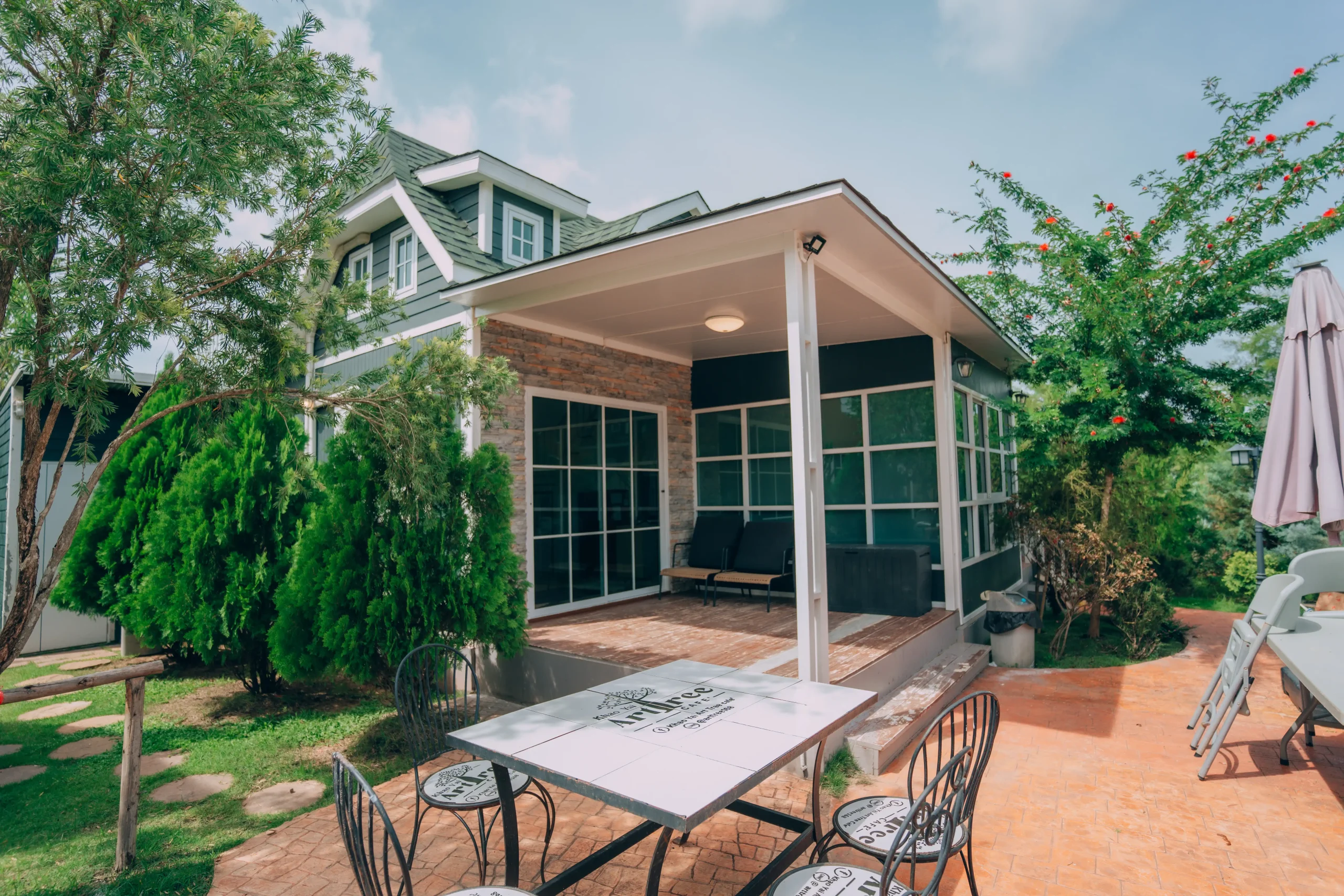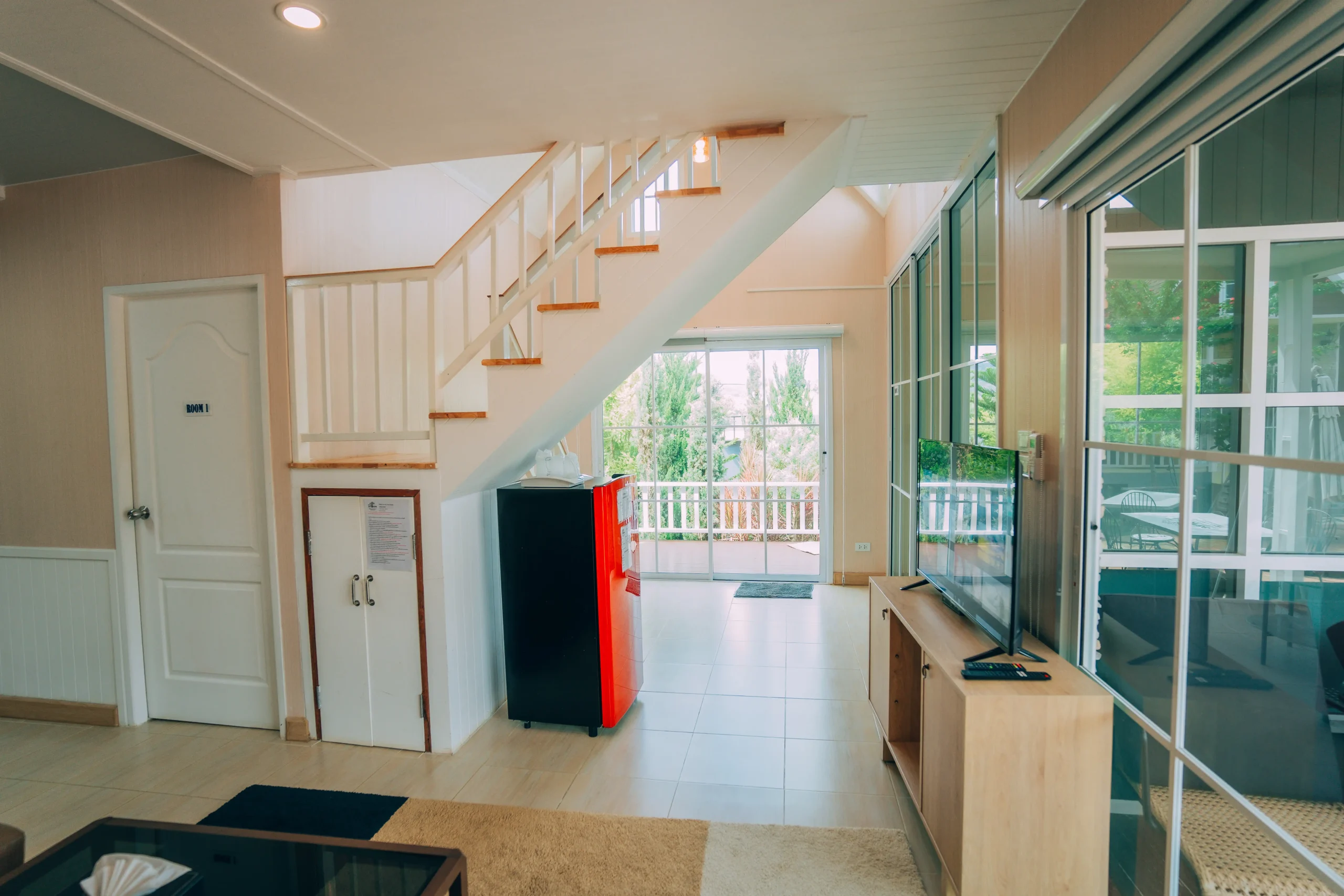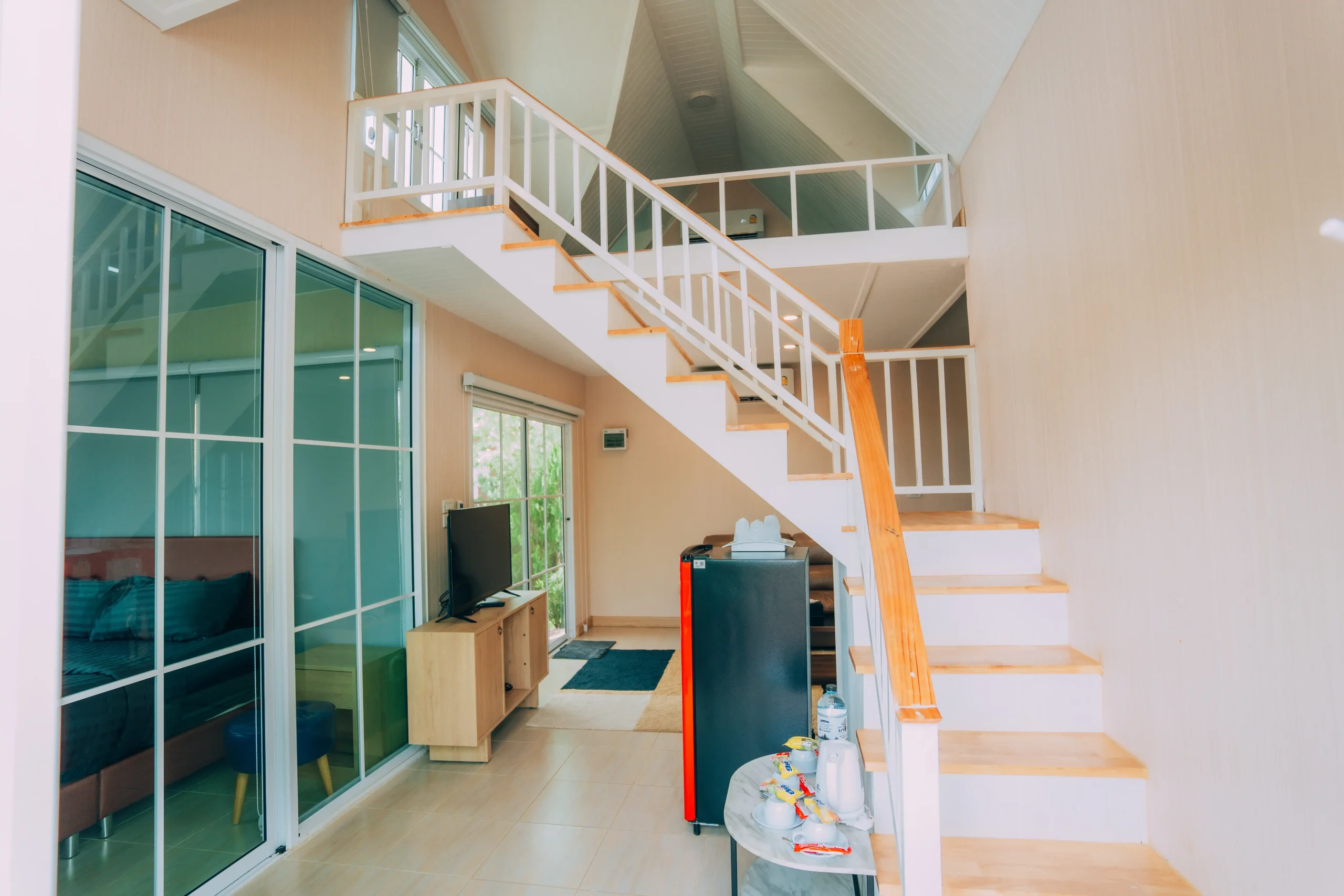 6 ท่าน/หลัง พักสูงสุดได้ 9 ท่าน เด็กอายุไม่เกิน 8 ปี พักฟรี 3 ท่าน (หากจำนวนเกิน 3 ท่านต้องเสริม) 2 ห้องนอน 1 ห้องชั้นลอย 2 ห้องน้ำ 1 ห้องครัว Outdoor สระว่ายน้ำส่วนกลางระบบเกลือ ขนาด 8x15x1.35 ม.