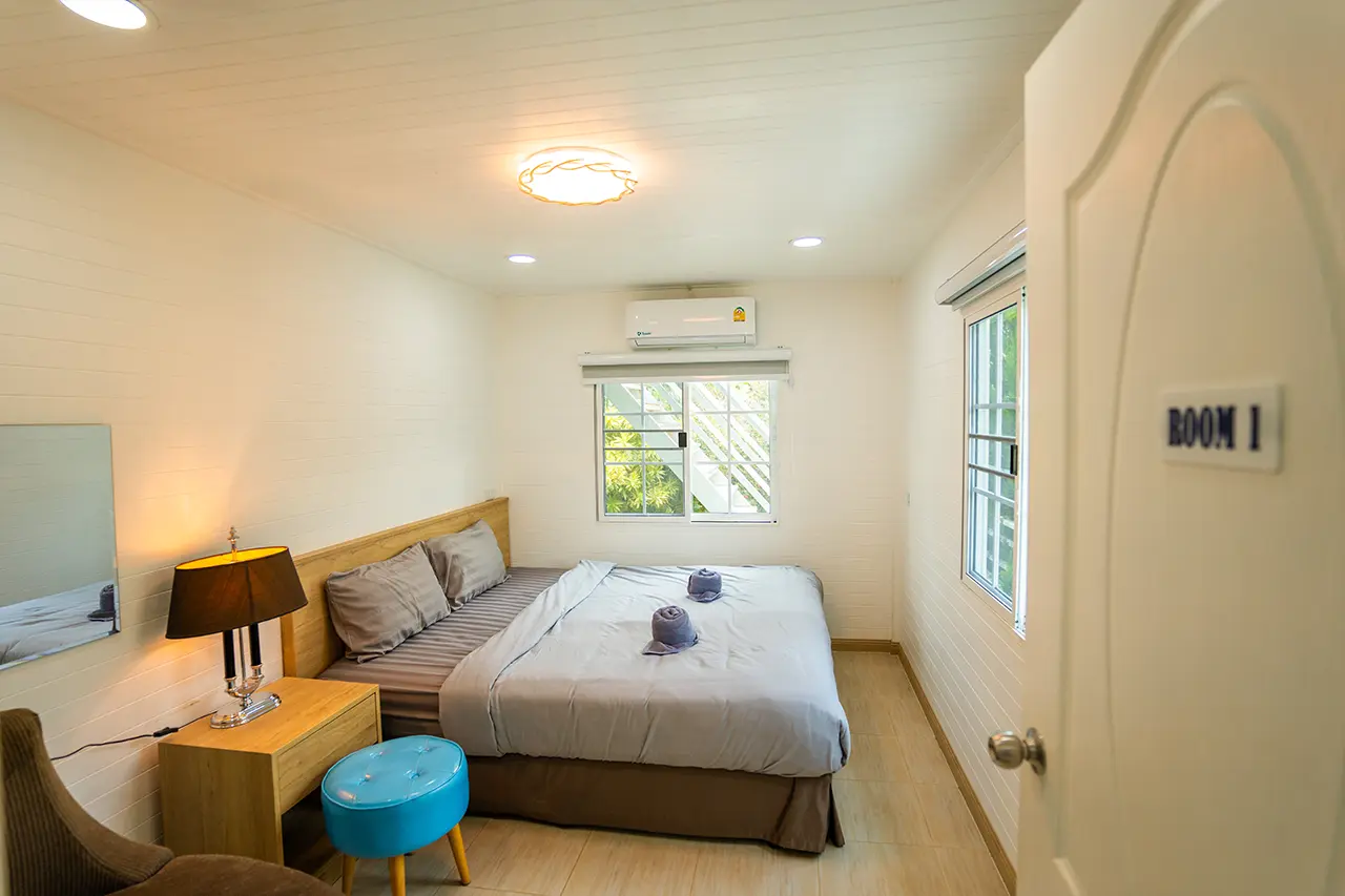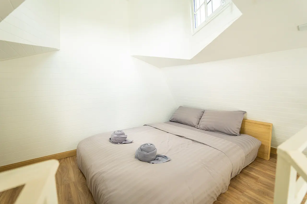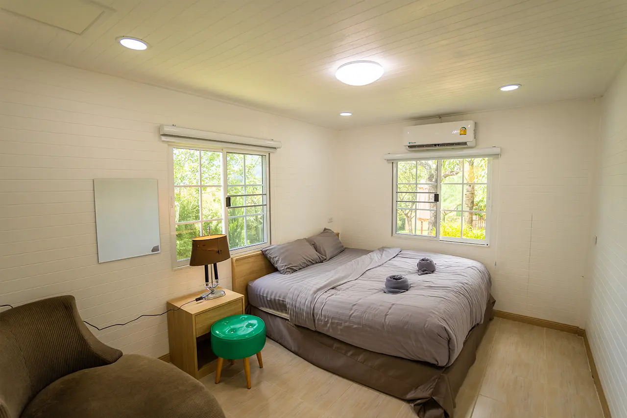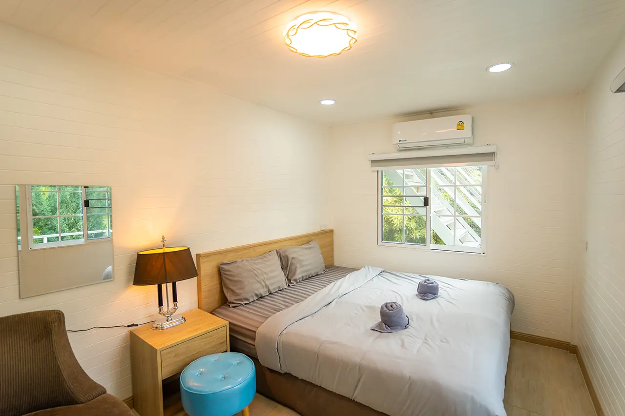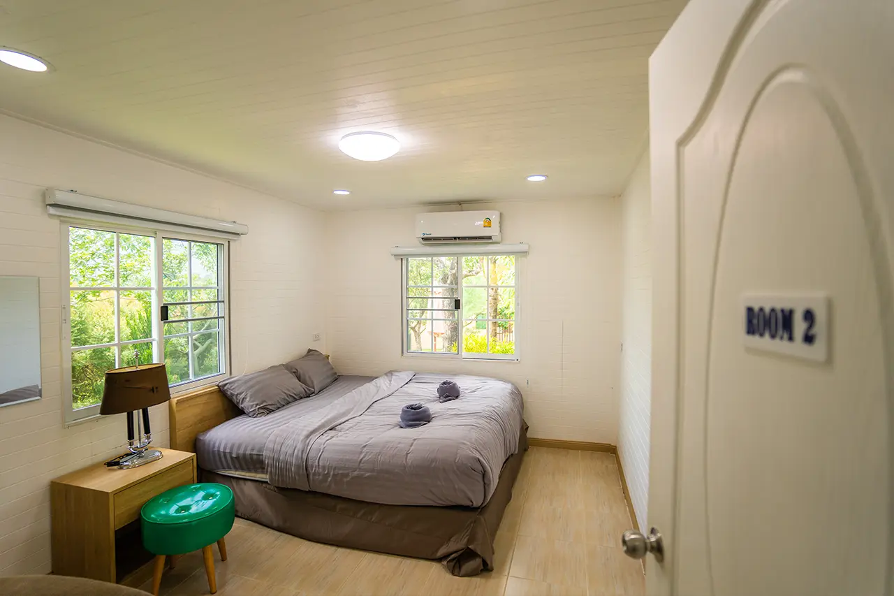บ้านพักเมเปิ้ล 1-2 มี 2 ห้องนอน 1 ชั้นลอย และ 2 ห้องน้ำ สามารถพักได้ 6 ท่าน/หลัง เสริมได้สูงสุด 3 ท่าน รวม 9 ท่าน เสริมท่านละ 850 บาท (กรณีลูกค้าแจ้งเสริมแล้วไม่สามารถยกเลิกได้ทุกกรณี) ราคาบ้านพักรวมอาหารเช้า เด็กไม่เกิน 8 ปี พักฟรี 3 ท่าน (ไม่มีที่นอนเสริม)