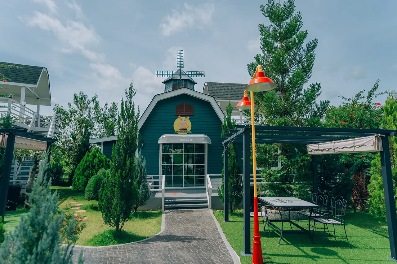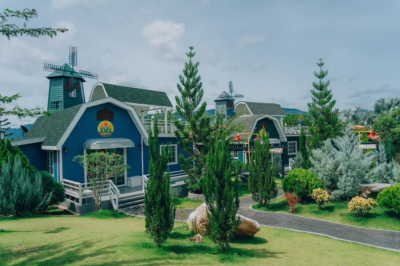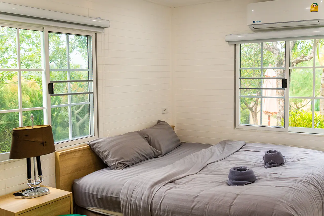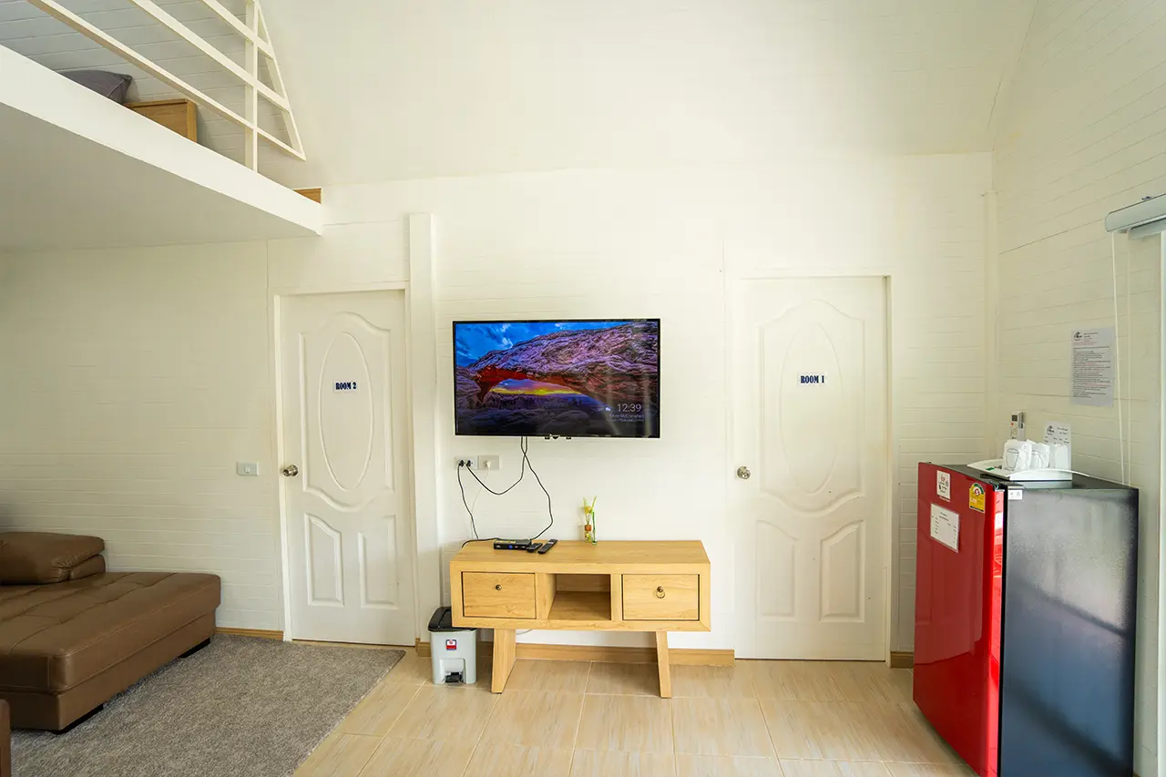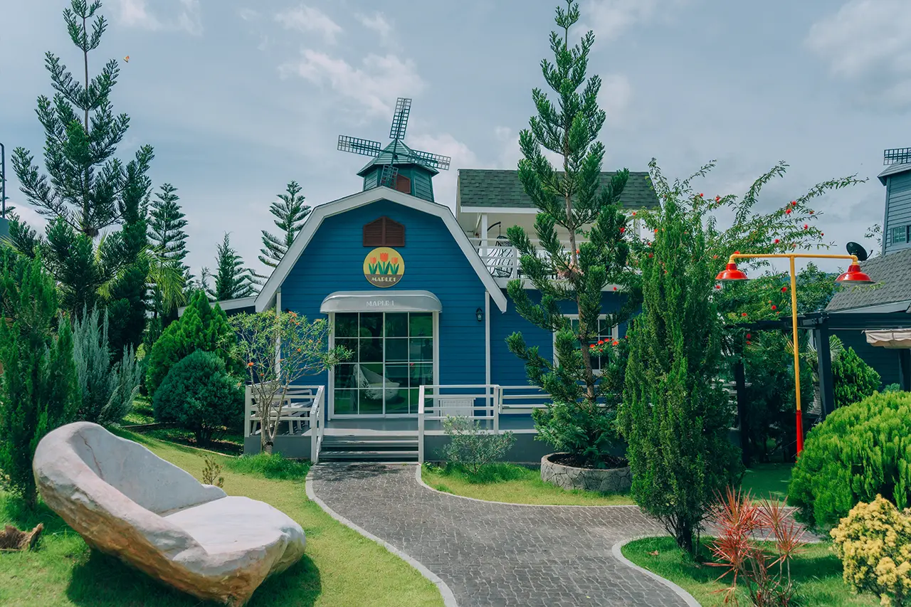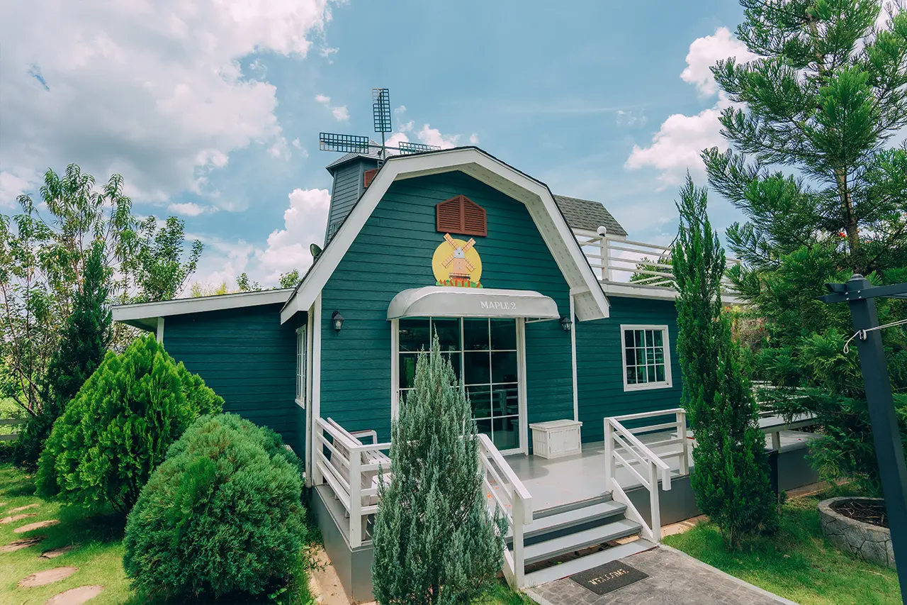 บ้านพักเมเปิ้ล 1-2 มี 2 ห้องนอน 1 ชั้นลอย และ 2 ห้องน้ำ สามารถพักได้ 6 ท่าน/หลัง เสริมได้สูงสุด 3 ท่าน รวม 9 ท่าน เสริมท่านละ 850 บาท (กรณีลูกค้าแจ้งเสริมแล้วไม่สามารถยกเลิกได้ทุกกรณี) ราคาบ้านพักรวมอาหารเช้า เด็กไม่เกิน 8 ปี พักฟรี 3 ท่าน (ไม่มีที่นอนเสริม)