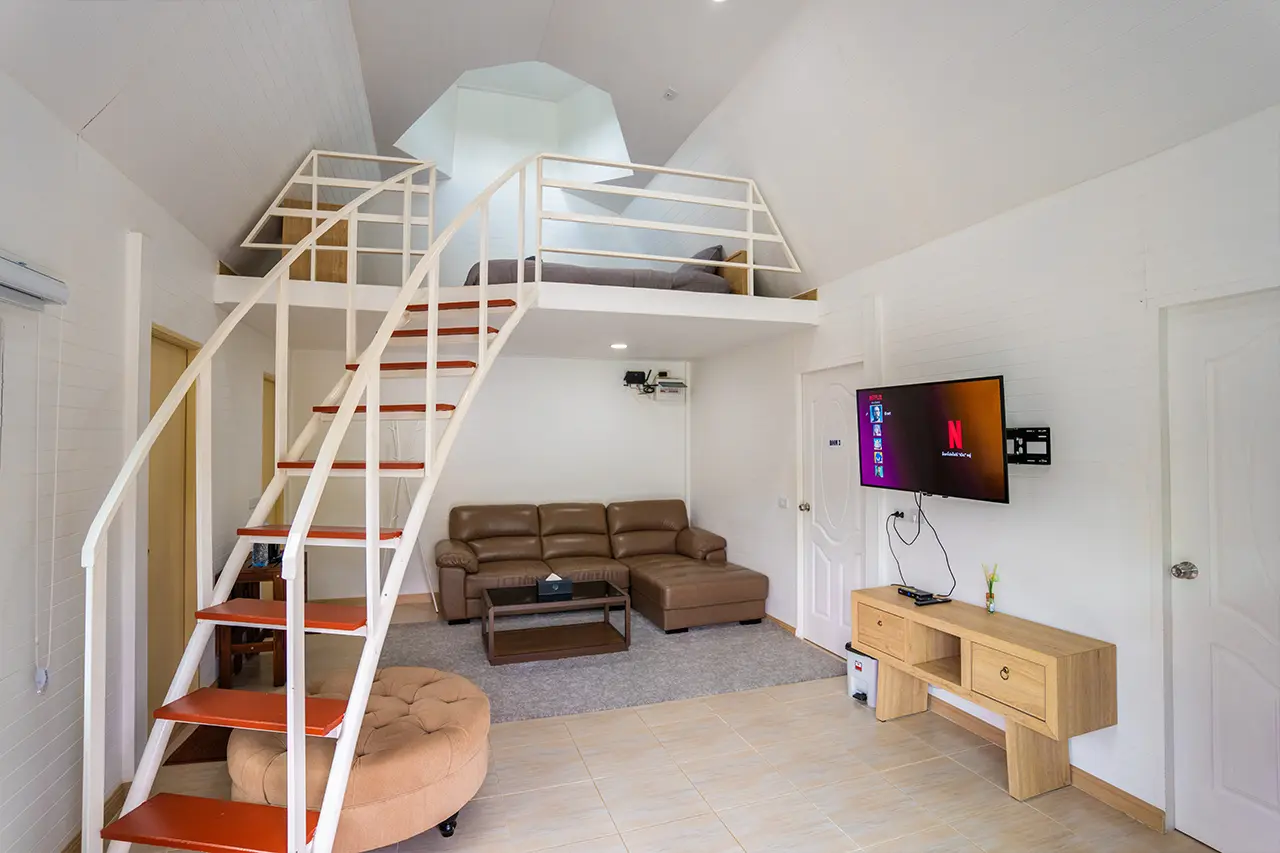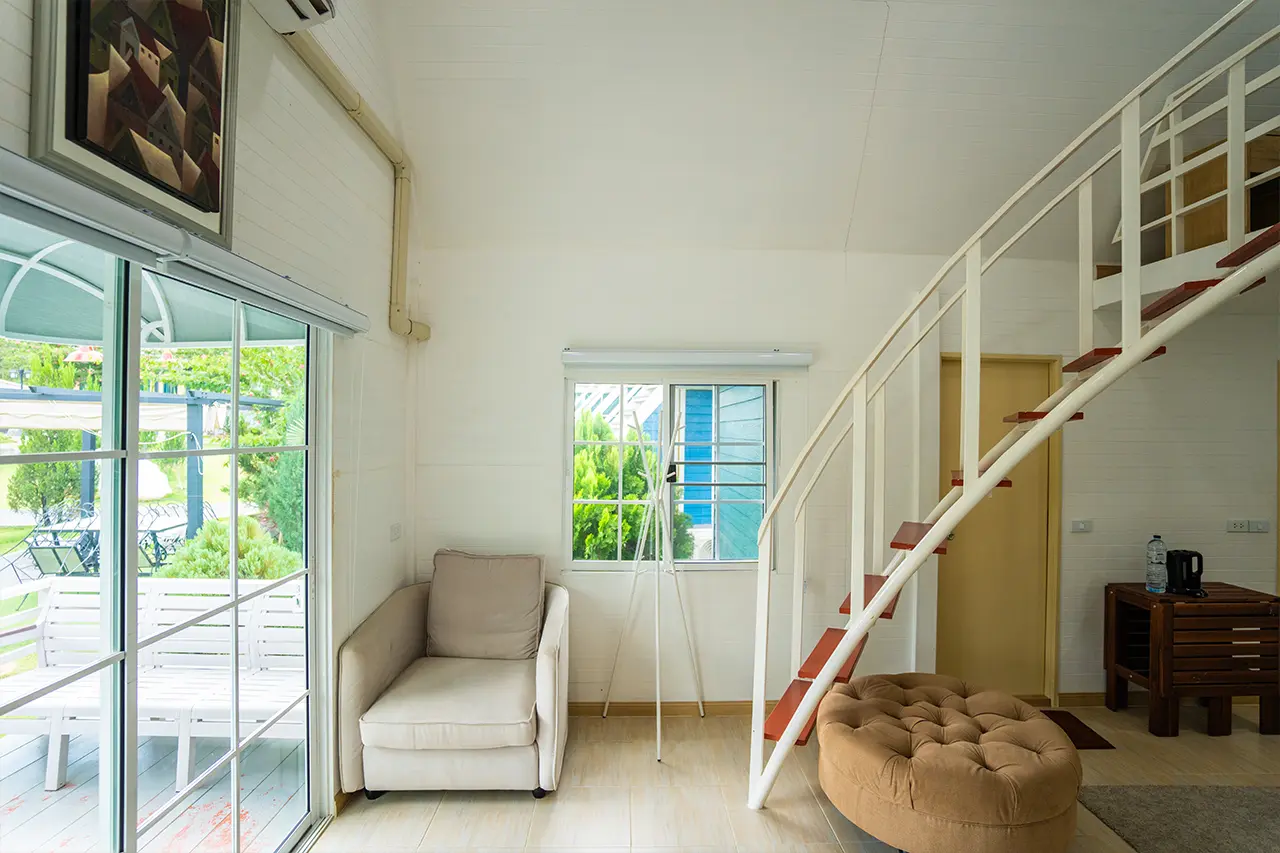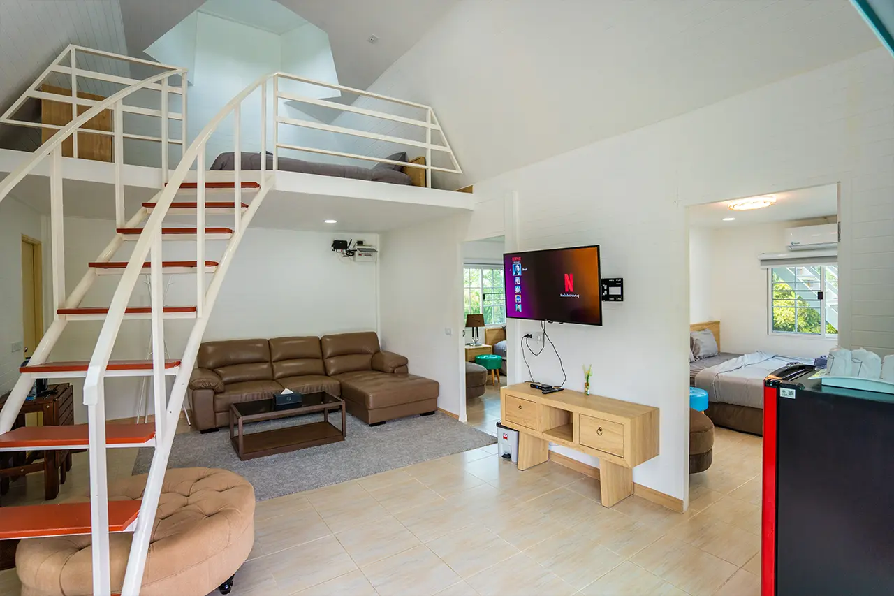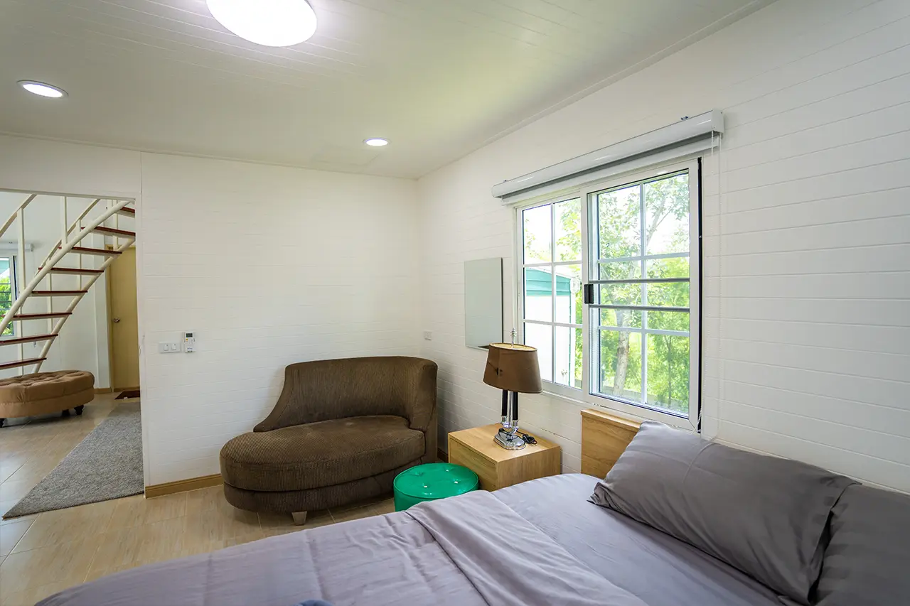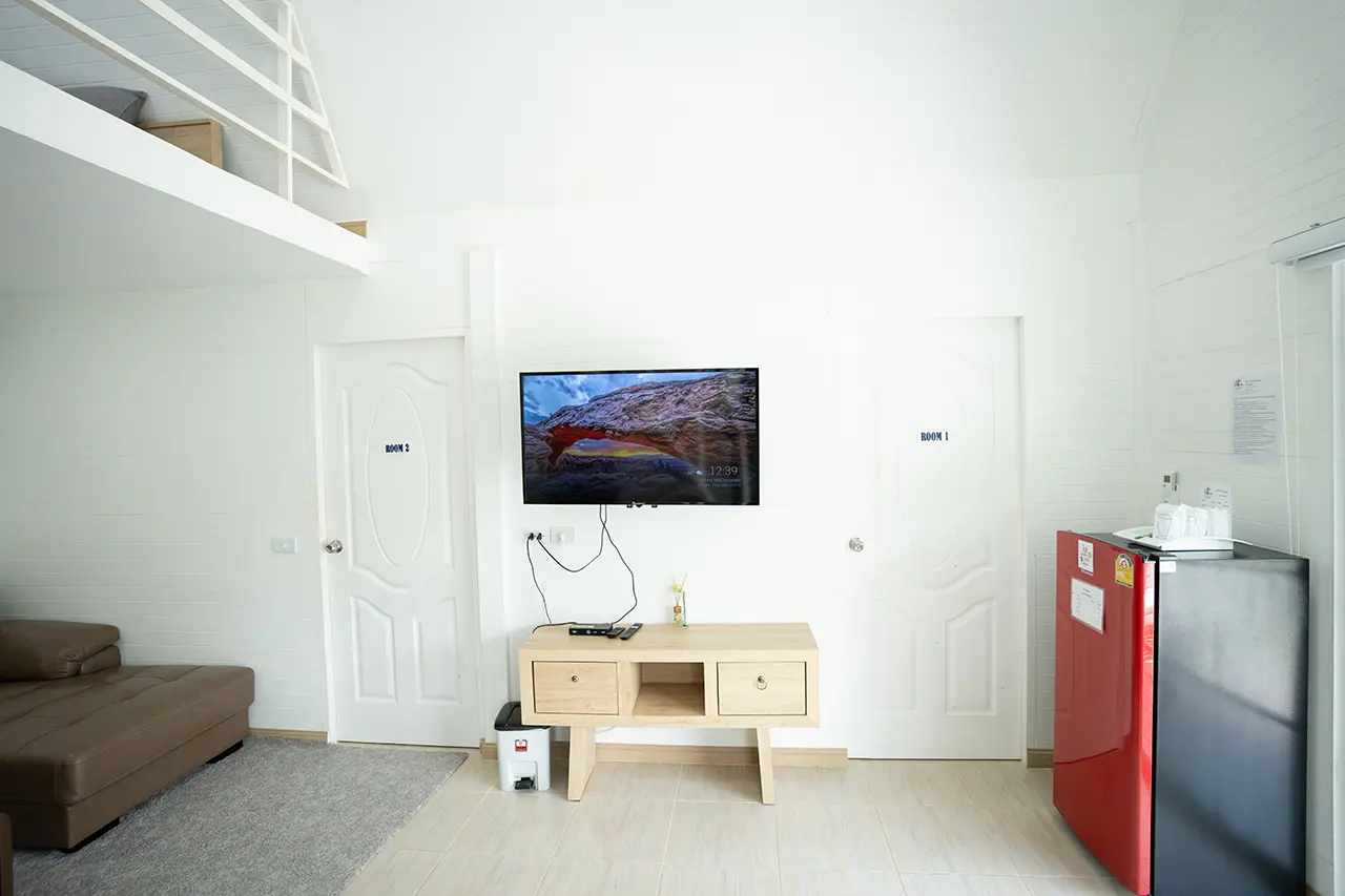 บ้านพักเมเปิ้ล 1-2 มี 2 ห้องนอน 1 ชั้นลอย และ 2 ห้องน้ำ สามารถพักได้ 6 ท่าน/หลัง เสริมได้สูงสุด 3 ท่าน รวม 9 ท่าน เสริมท่านละ 850 บาท (กรณีลูกค้าแจ้งเสริมแล้วไม่สามารถยกเลิกได้ทุกกรณี) ราคาบ้านพักรวมอาหารเช้า เด็กไม่เกิน 8 ปี พักฟรี 3 ท่าน (ไม่มีที่นอนเสริม)