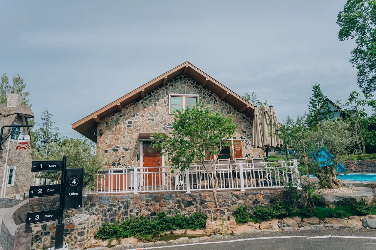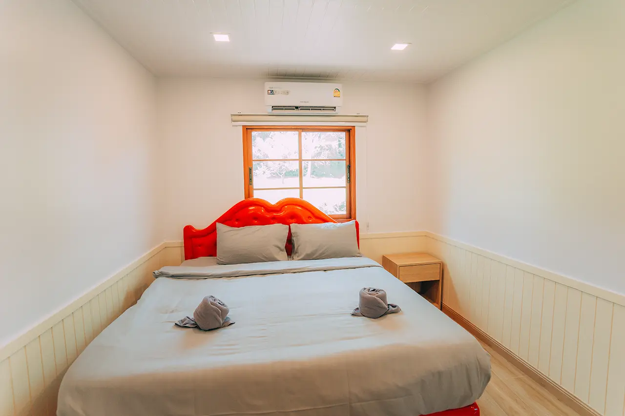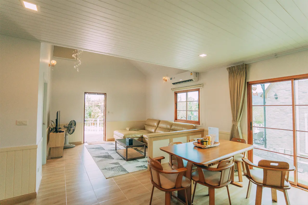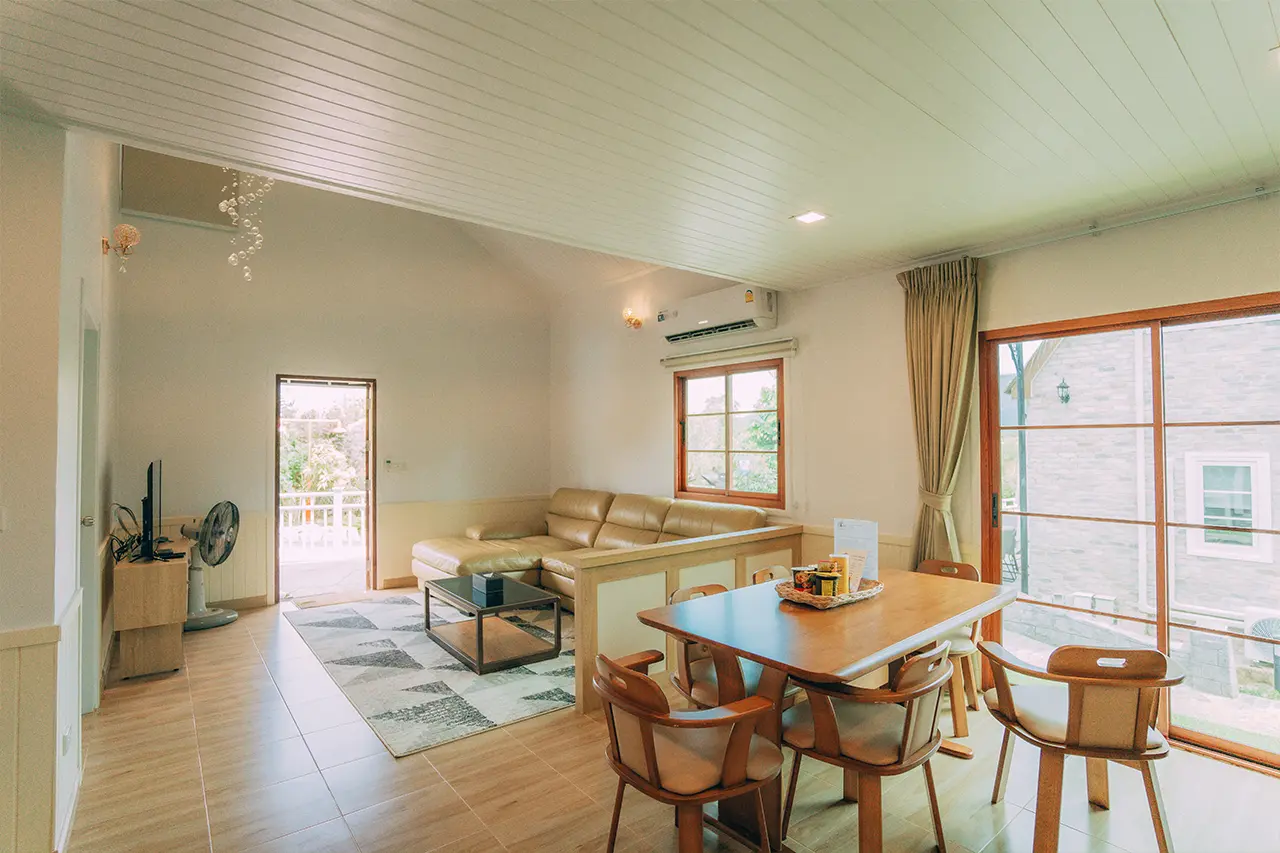 บ้านพักโอลีฟ 1 มี 3 ห้องนอน 1 ชั้นลอย และ 3 ห้องน้ำ สามารถพักได้ 12 ท่าน/หลัง เสริมได้สูงสุด 4 ท่าน รวม 16 ท่าน เสริมท่านละ 850 บาท (กรณีลูกค้าแจ้งเสริมแล้วไม่สามารถยกเลิกได้ทุกกรณี) ราคาบ้านพักรวมอาหารเช้า เด็กไม่เกิน 8 ปี พักฟรี 3 ท่าน (ไม่มีที่นอนเสริม)