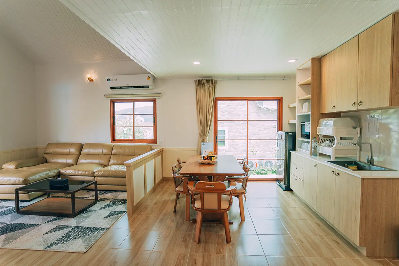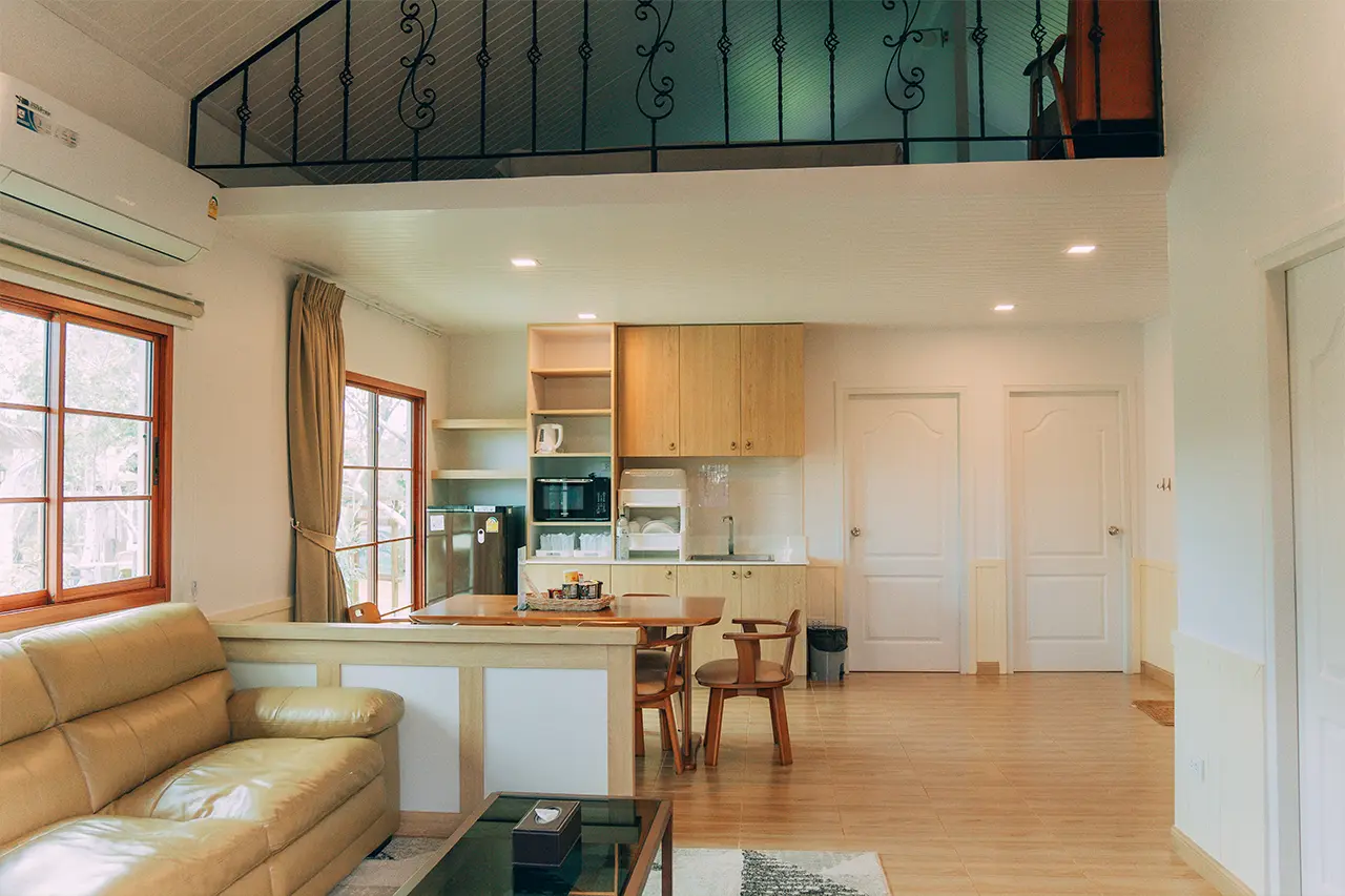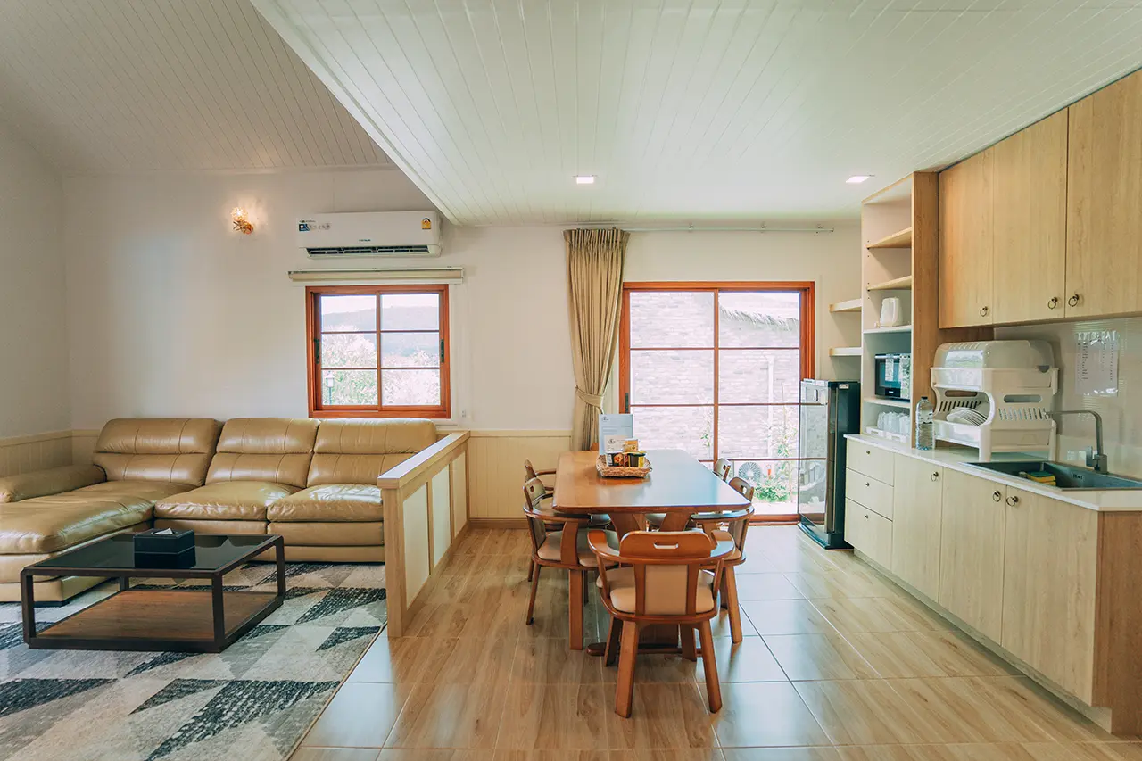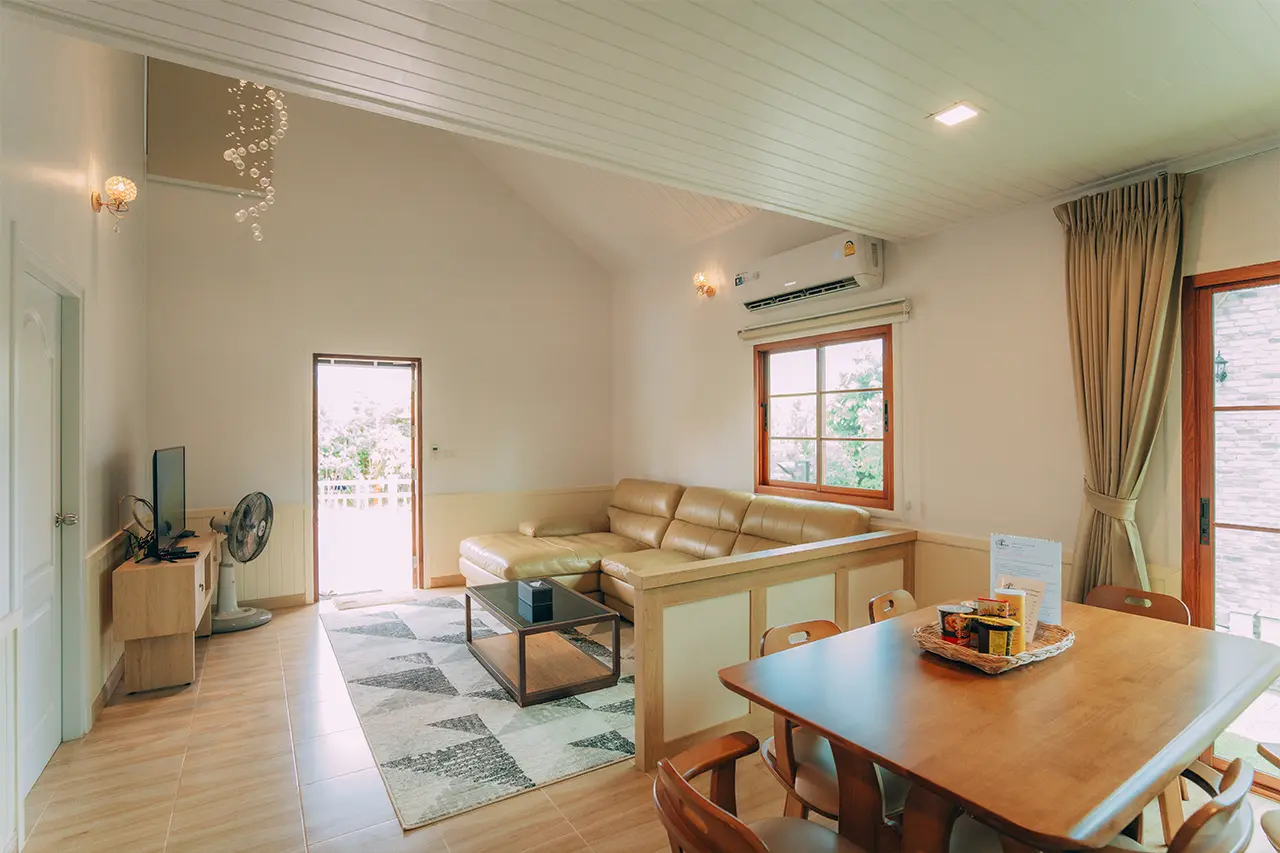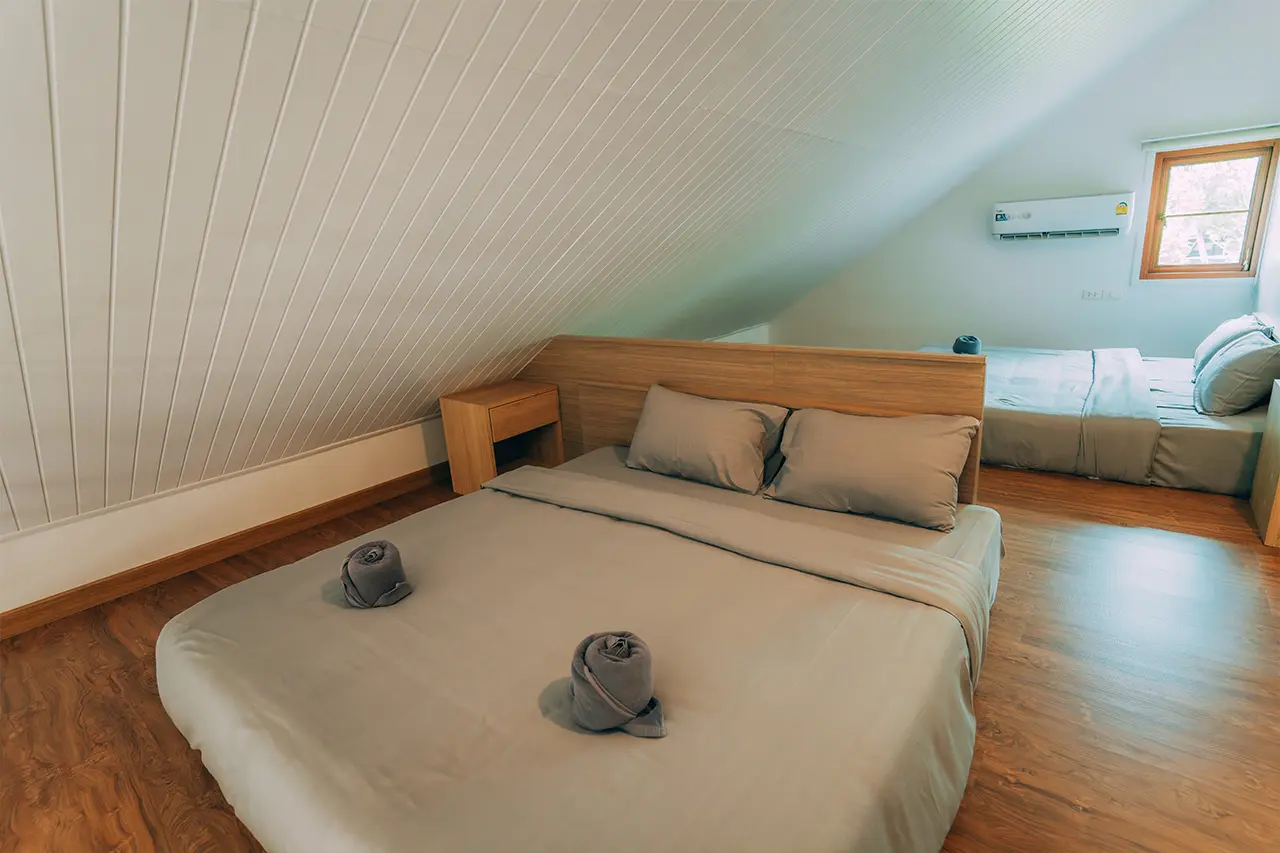 บ้านพักโอลีฟ 1 มี 3 ห้องนอน 1 ชั้นลอย และ 3 ห้องน้ำ สามารถพักได้ 12 ท่าน/หลัง เสริมได้สูงสุด 4 ท่าน รวม 16 ท่าน เสริมท่านละ 850 บาท (กรณีลูกค้าแจ้งเสริมแล้วไม่สามารถยกเลิกได้ทุกกรณี) ราคาบ้านพักรวมอาหารเช้า เด็กไม่เกิน 8 ปี พักฟรี 3 ท่าน (ไม่มีที่นอนเสริม)
