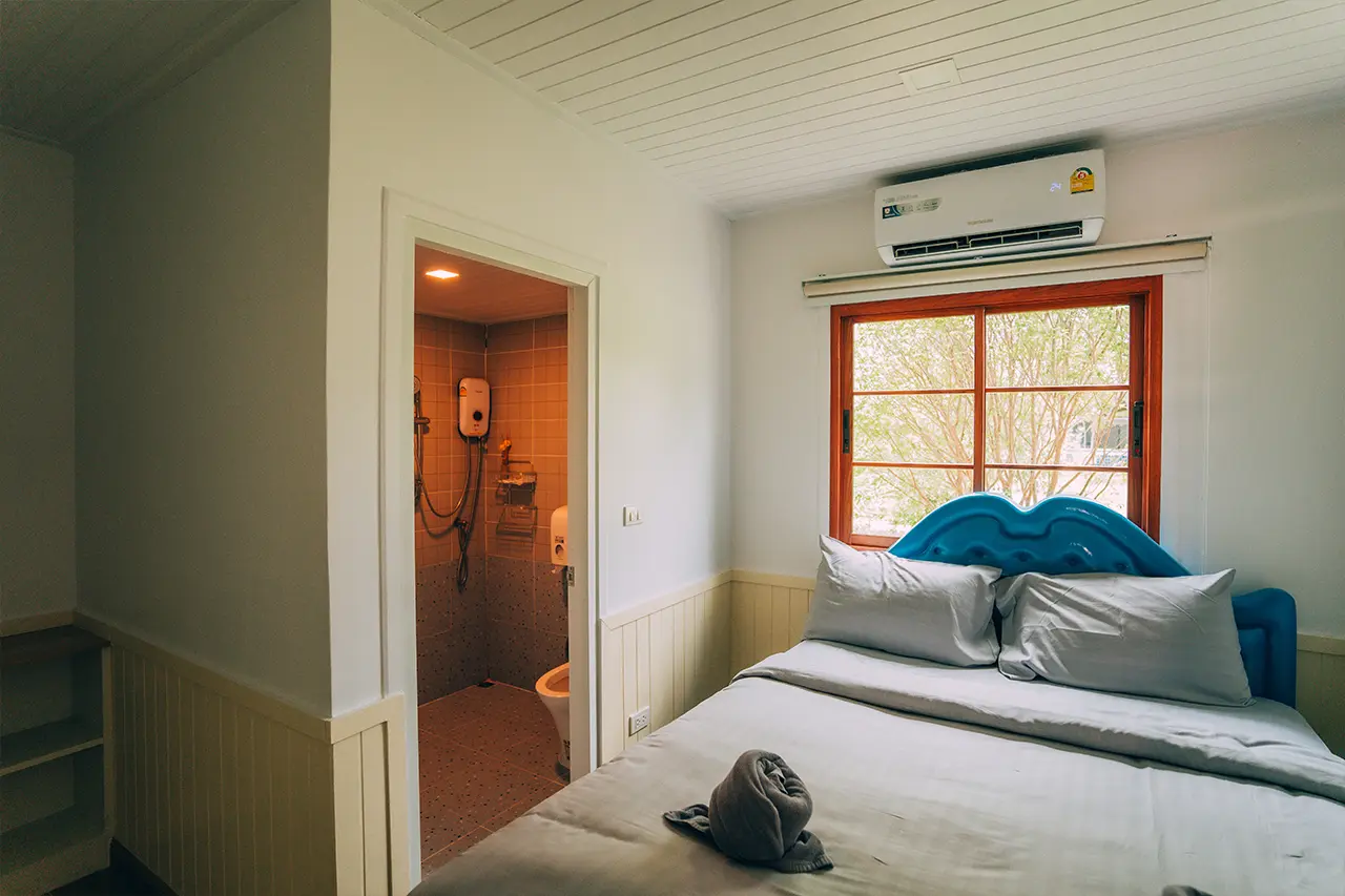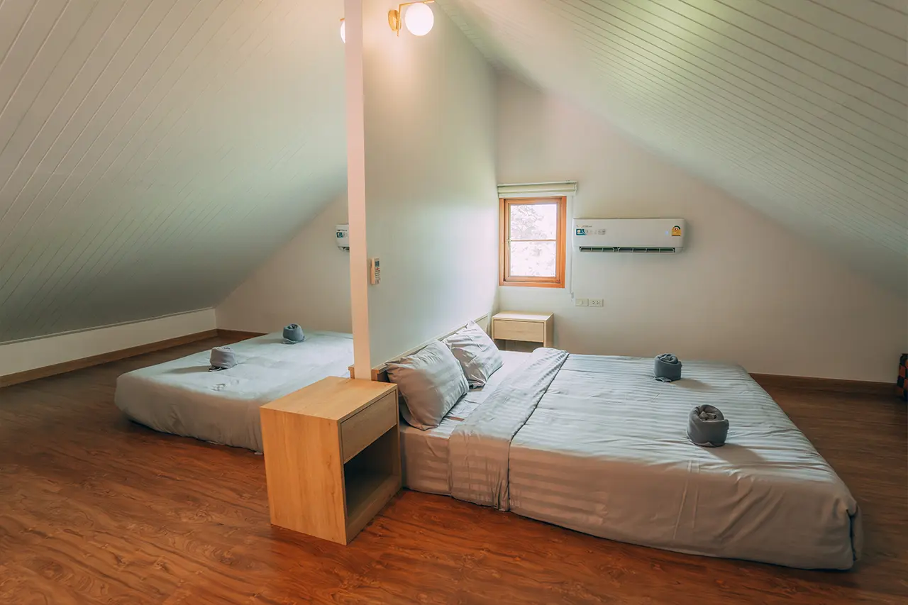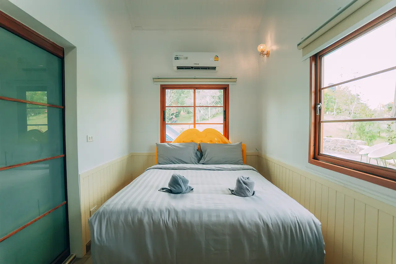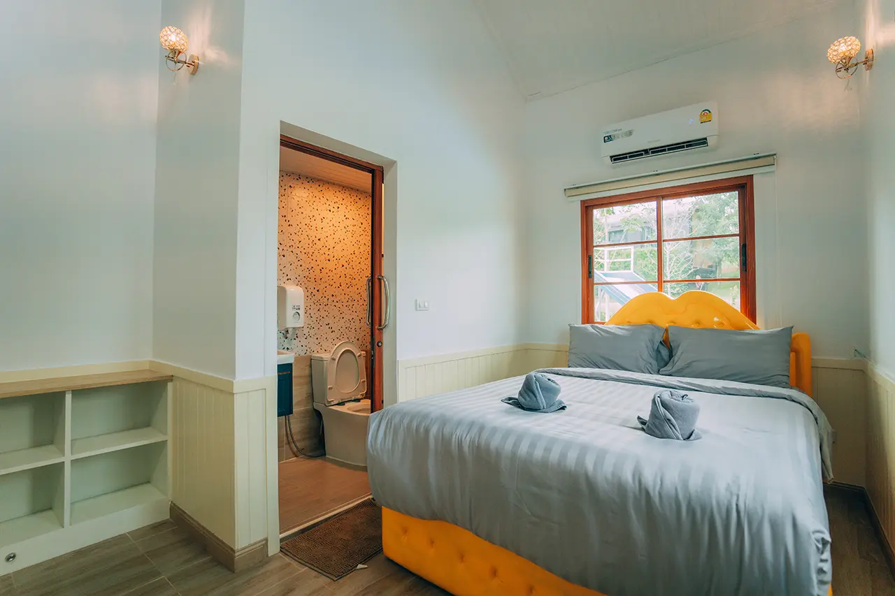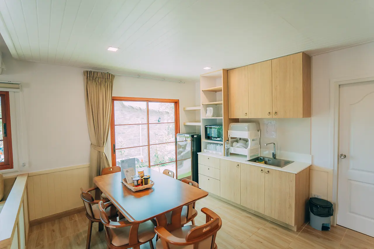 บ้านพักโอลีฟ 1 มี 3 ห้องนอน 1 ชั้นลอย และ 3 ห้องน้ำ สามารถพักได้ 12 ท่าน/หลัง เสริมได้สูงสุด 4 ท่าน รวม 16 ท่าน เสริมท่านละ 850 บาท (กรณีลูกค้าแจ้งเสริมแล้วไม่สามารถยกเลิกได้ทุกกรณี) ราคาบ้านพักรวมอาหารเช้า เด็กไม่เกิน 8 ปี พักฟรี 3 ท่าน (ไม่มีที่นอนเสริม)